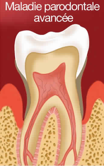 C'est une infection de la gencive et de l'os qui entoure les dents entraînant une destruction des tissus parodontaux (gencive, cément et os de la mâchoire)